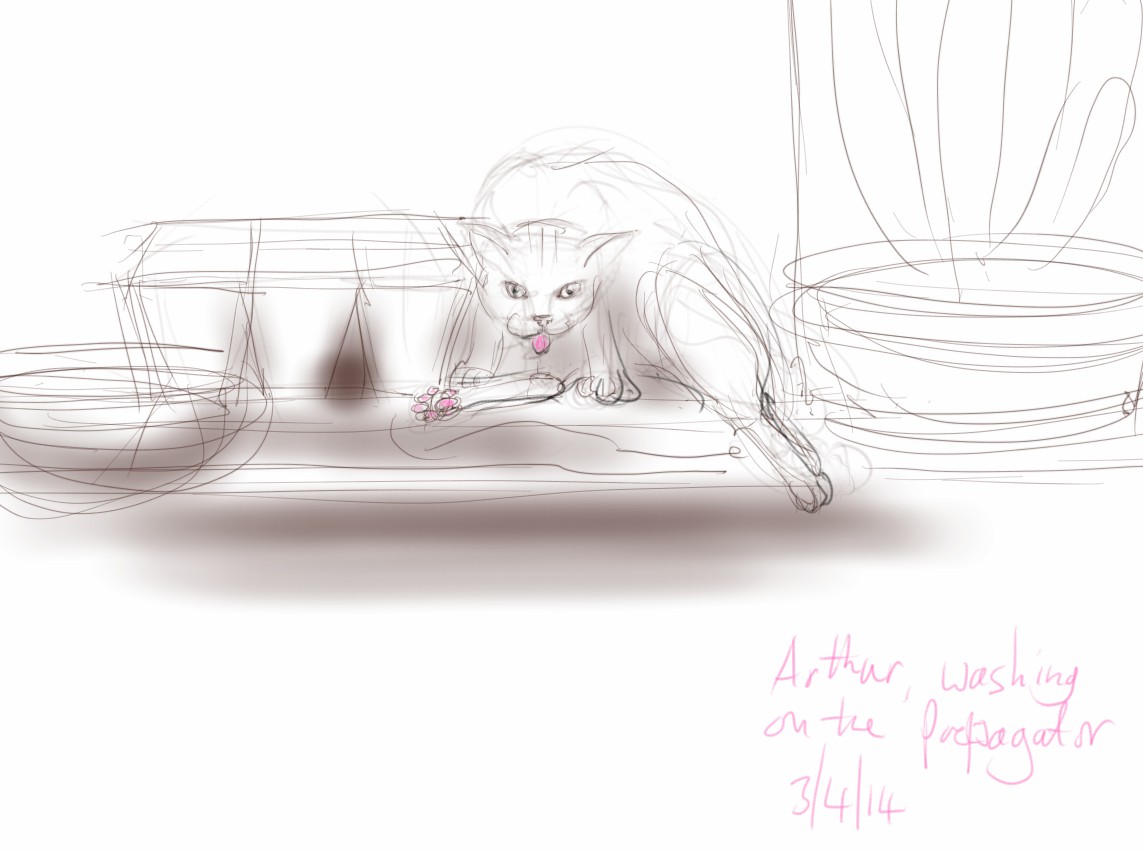 4 out of 6 of Arthur’s seedlings are up! He feels it may be helpful to the others to keep them warm with his chin in order to ensure they germinate…