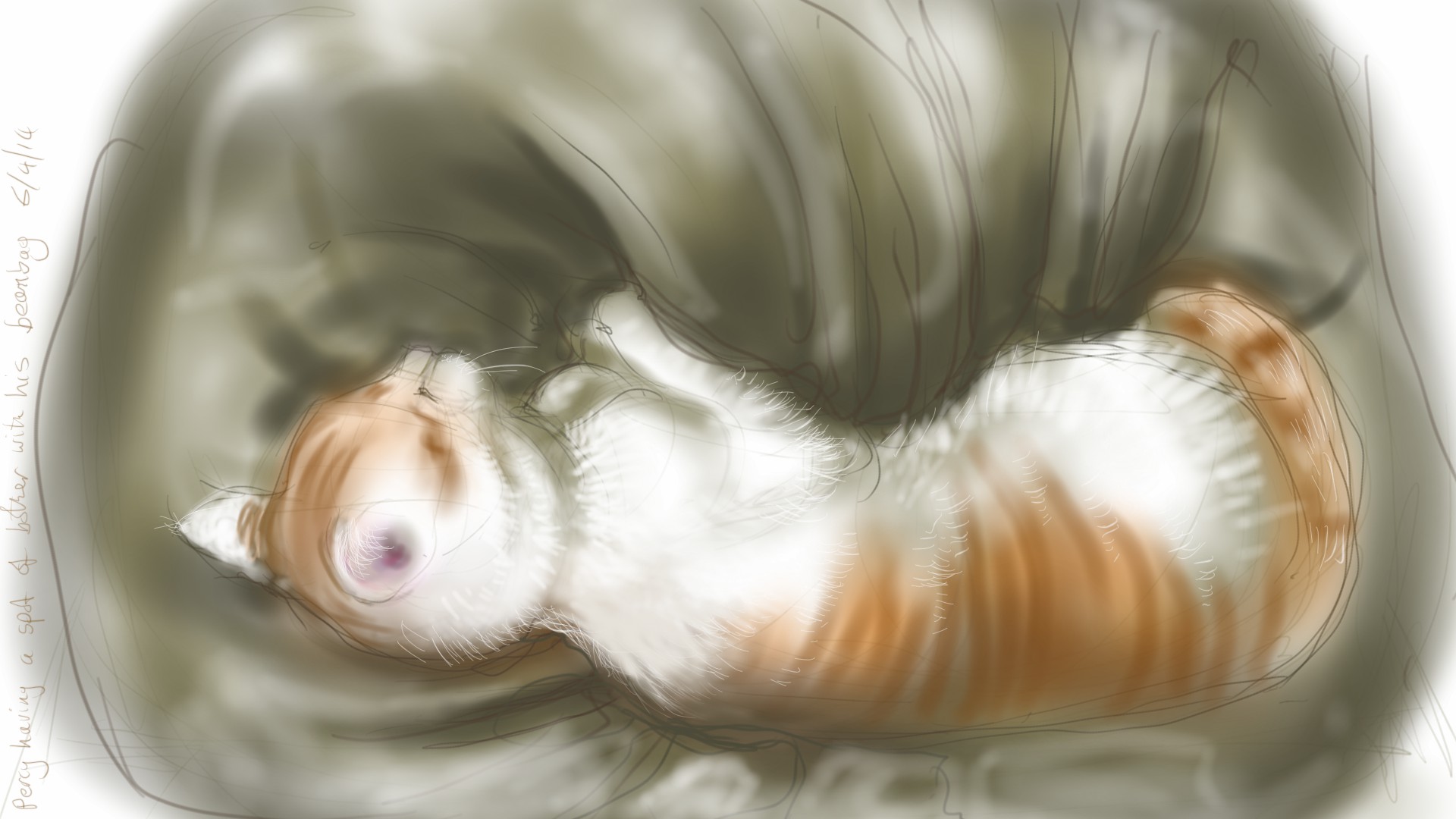 Cat and chickens, 5th April Nancy FarmerApril 5, 2014April 10, 2014Chickens Post navigation PreviousNext I thought I’d have another go at drawing the chickens, but then it started to rain, so I went inside where I found Percy apparently losing the battle against the beanbag, which was trying to engulf him! Never got to finish the chickens… Unfinished chicken Percy sinking… Unfinished chickens 0.000000 0.000000 Share this: Click to share on X (Opens in new window) X Click to share on Facebook (Opens in new window) Facebook Click to share on Pocket (Opens in new window) Pocket Click to share on Pinterest (Opens in new window) Pinterest Click to share on Tumblr (Opens in new window) Tumblr Click to share on Reddit (Opens in new window) Reddit Click to email a link to a friend (Opens in new window) Email Click to share on LinkedIn (Opens in new window) LinkedIn Like Loading... Related