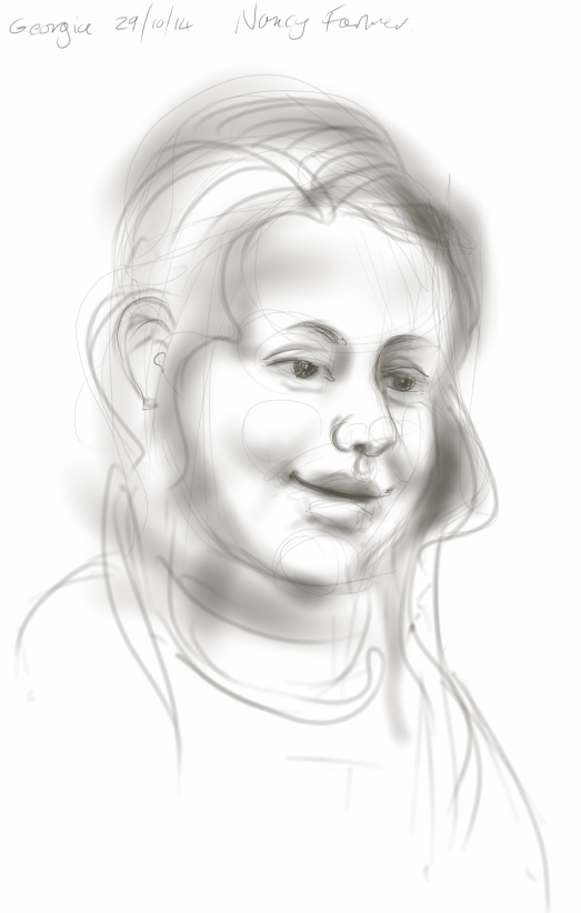 The other pic is Georgia, sketched from across a wide table when she was moving around all the time, which accounts for it not looking very much like her. For a 6 year old she can’t half scramble up mountains though!