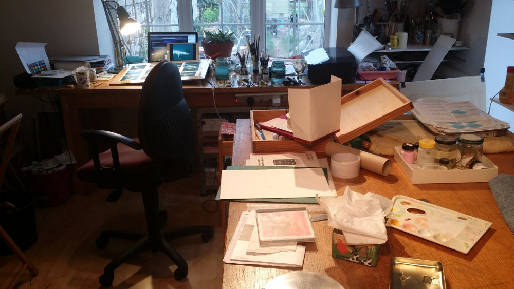 2017-04-14 17.10.02_web April 14, 2017 Return to: Mini PaintingsFull resolution (1000 × 563) Image navigation Previous Image Next Image And the plan chest surface is full as well. Cats are banned from this room till I clear up.