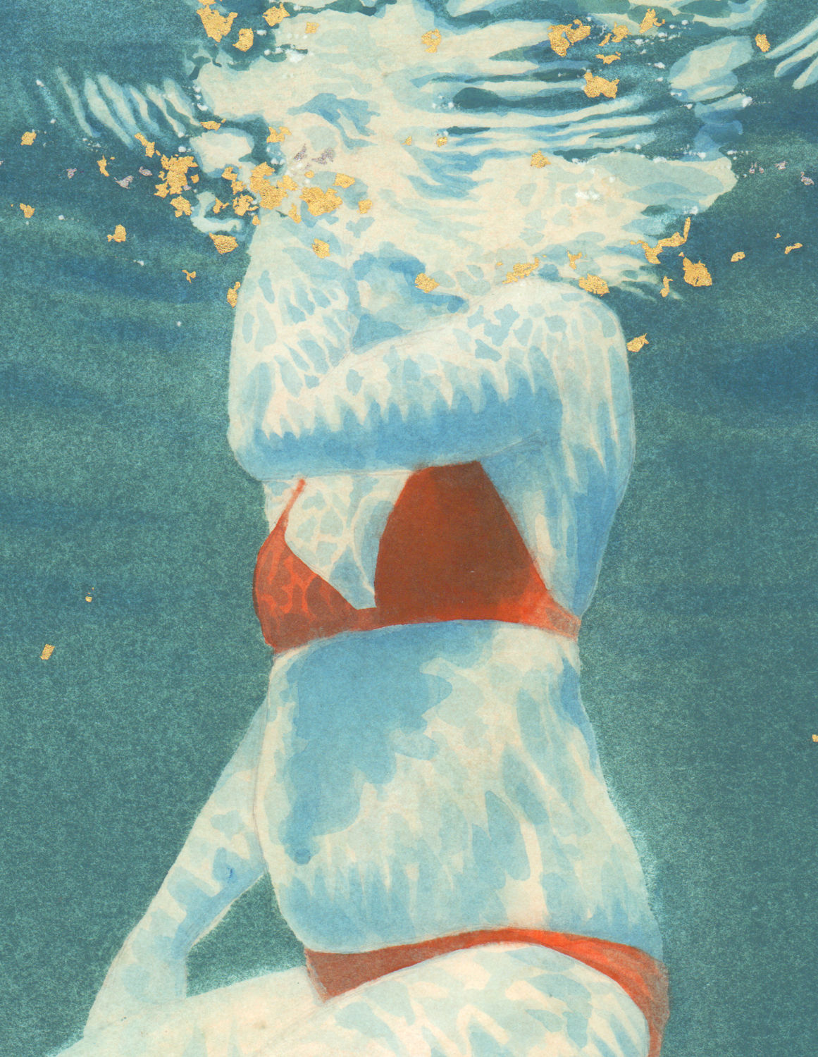 Reflections I in watercolour, gouache & gold leaf