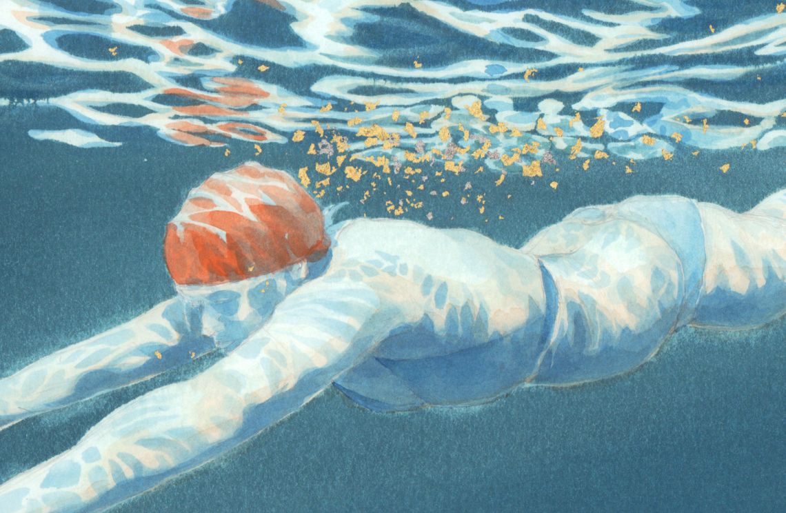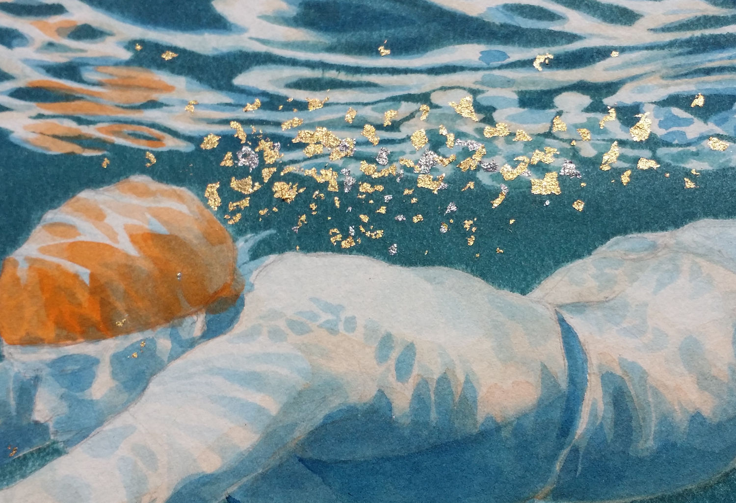 Second painting in my investigations into the painting of reflections of swimmers on the underside of the water.