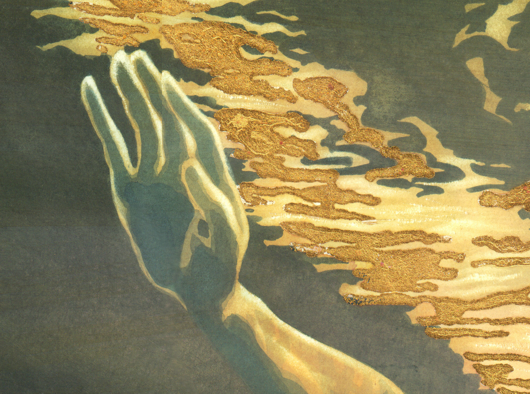 Angel of Grasmere_clo2 June 30, 2018 Return to: The Angel of GrasmereFull resolution (1760 × 1309) Image navigation Previous Image Next Image close-up detail of gold leaf and watercolour.
