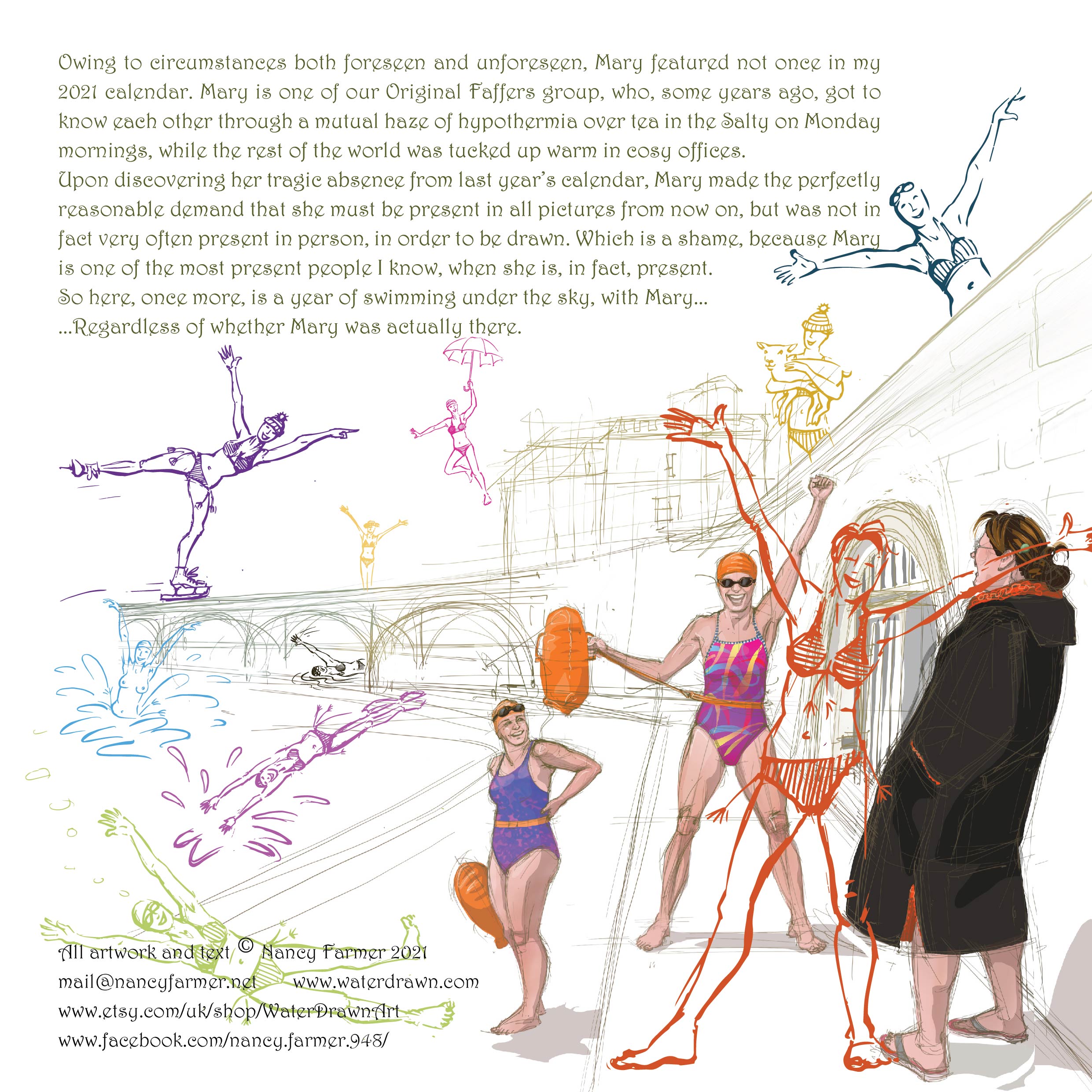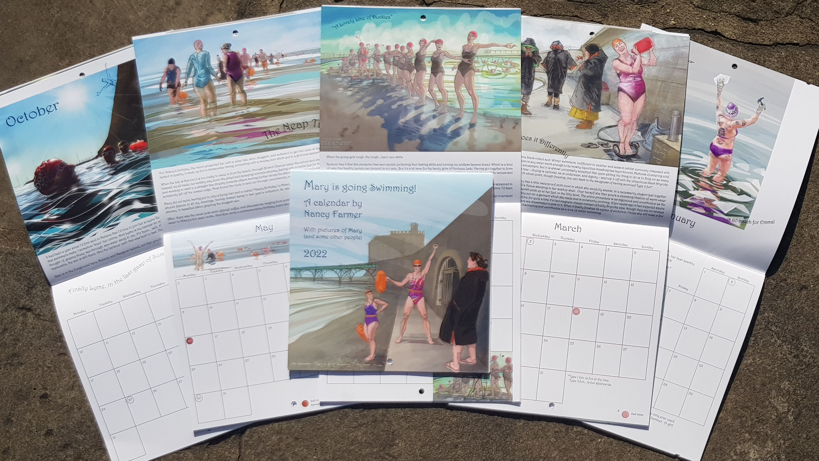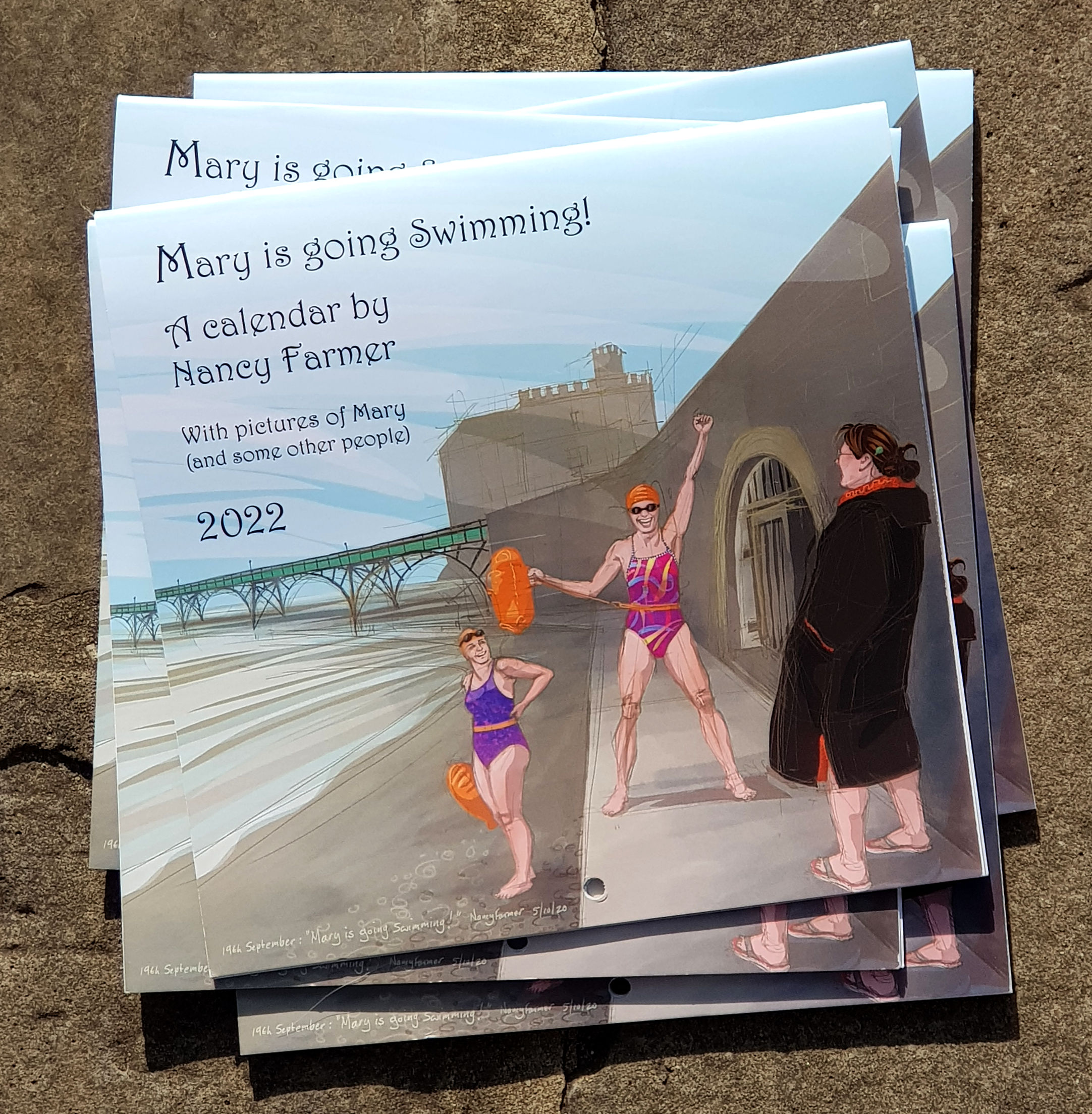 I present my 2022 calendar: “Mary is going Swimming”.