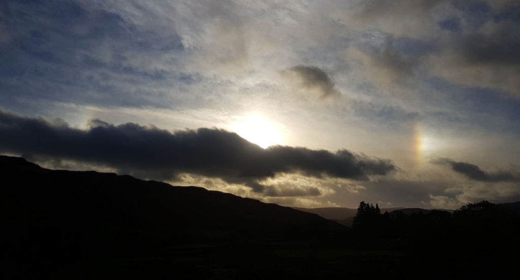 I have never before seen what I now know to be called a Sunbow, but that morning as I descended southwest into the Ullswater valley, with the sun occasionally dazzling, my attention was caught by the small fragment of rainbow, right in my eyeline. Funny place for a rainbow, thought I, not where it ought to be.