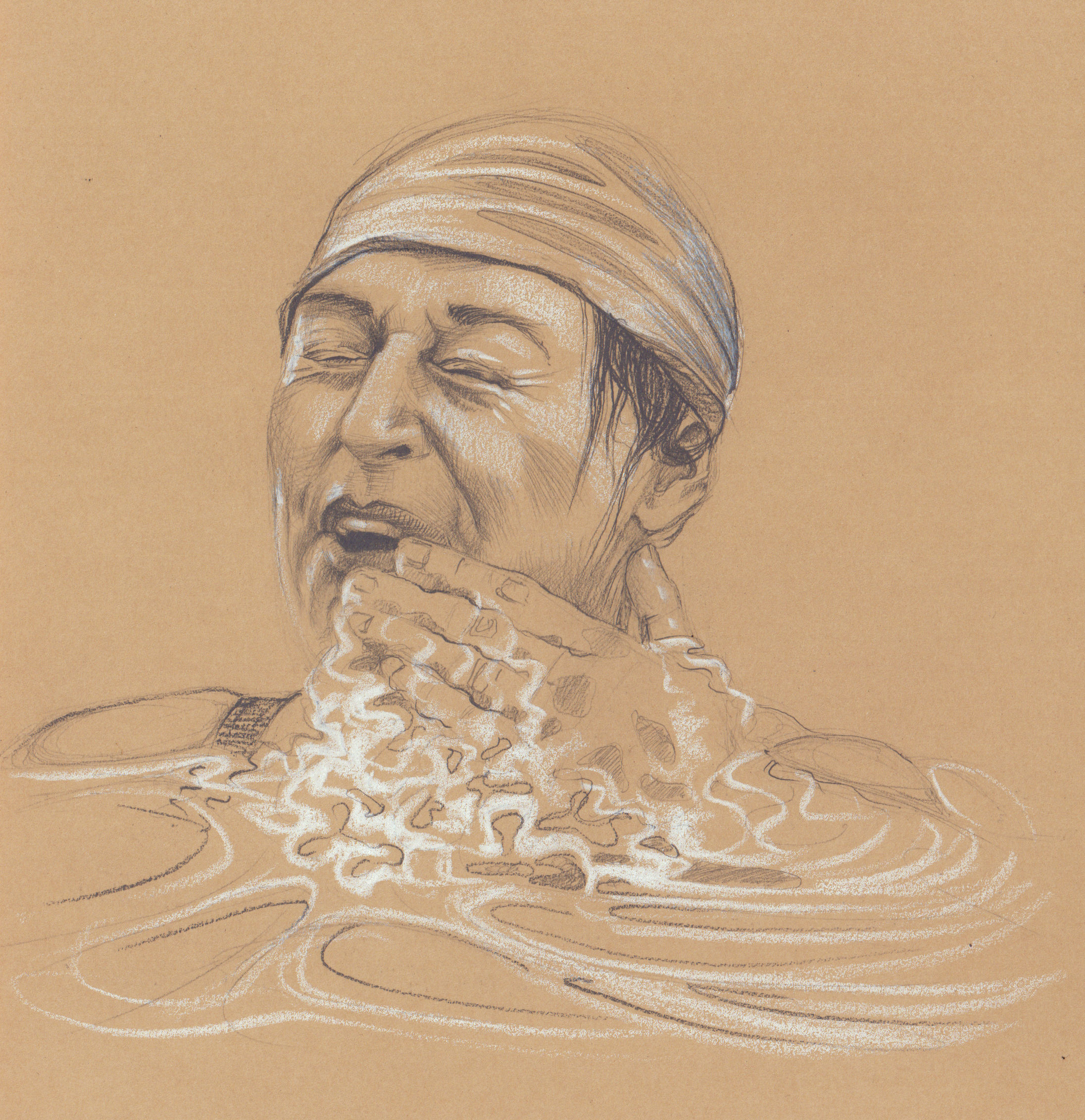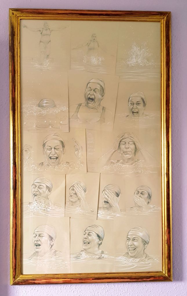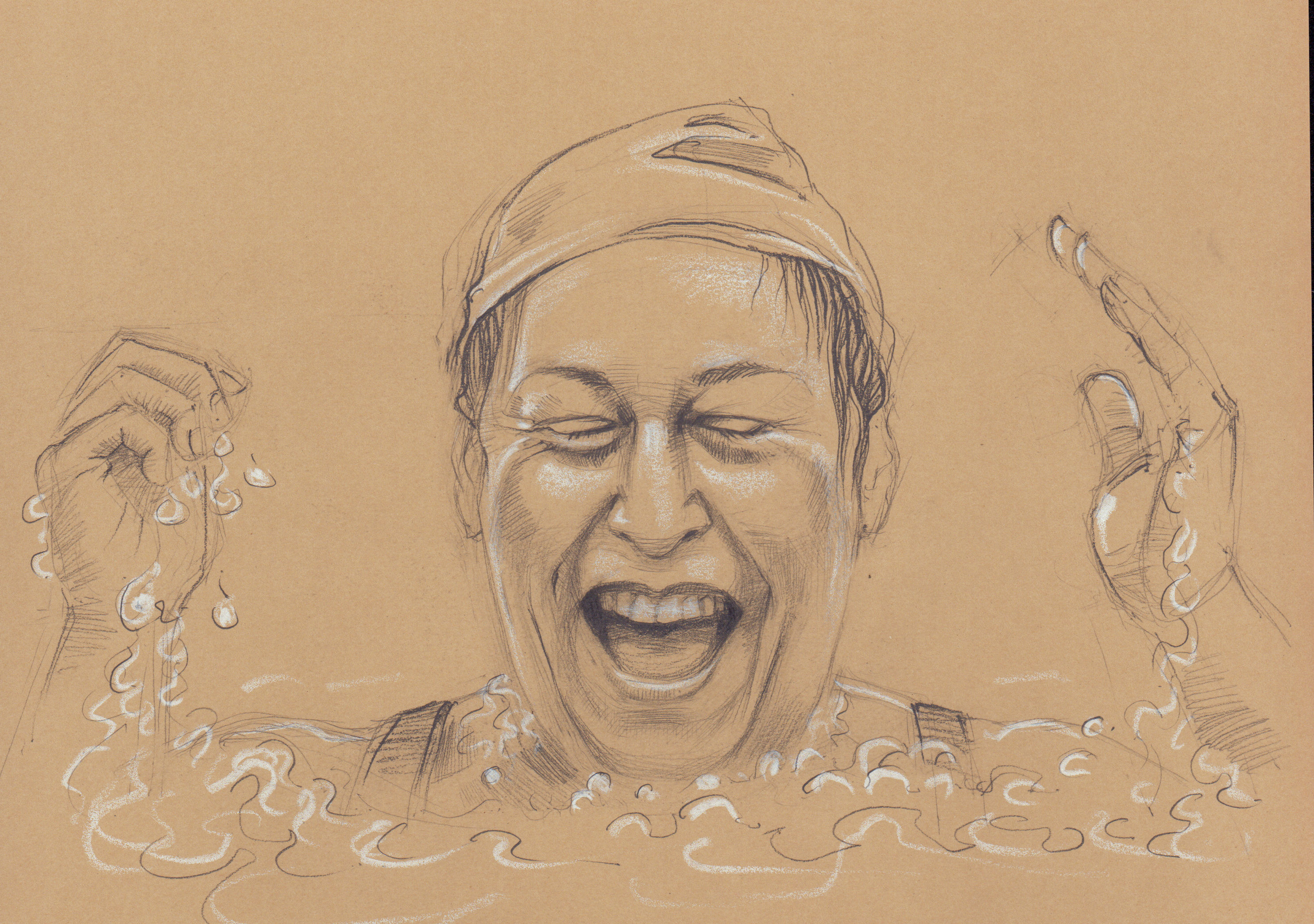 There was some discussion on Facebook this morning about Wim Hof getting a load of celebrities jumping into cold water on TV and whether this was a good idea. I haven’t seen it, I just thought you’d like to see how a pro jumps into cold water. This is Hilary Jenkins-Spangler who was fantasticality accommodating enough to suggest jumping off the island in Clevedon Marine Lake last month… just because I wanted to practice drawing portraits*.