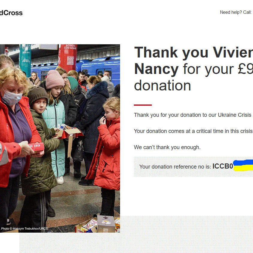 Total sent to charities in aid of Ukraine: £3308