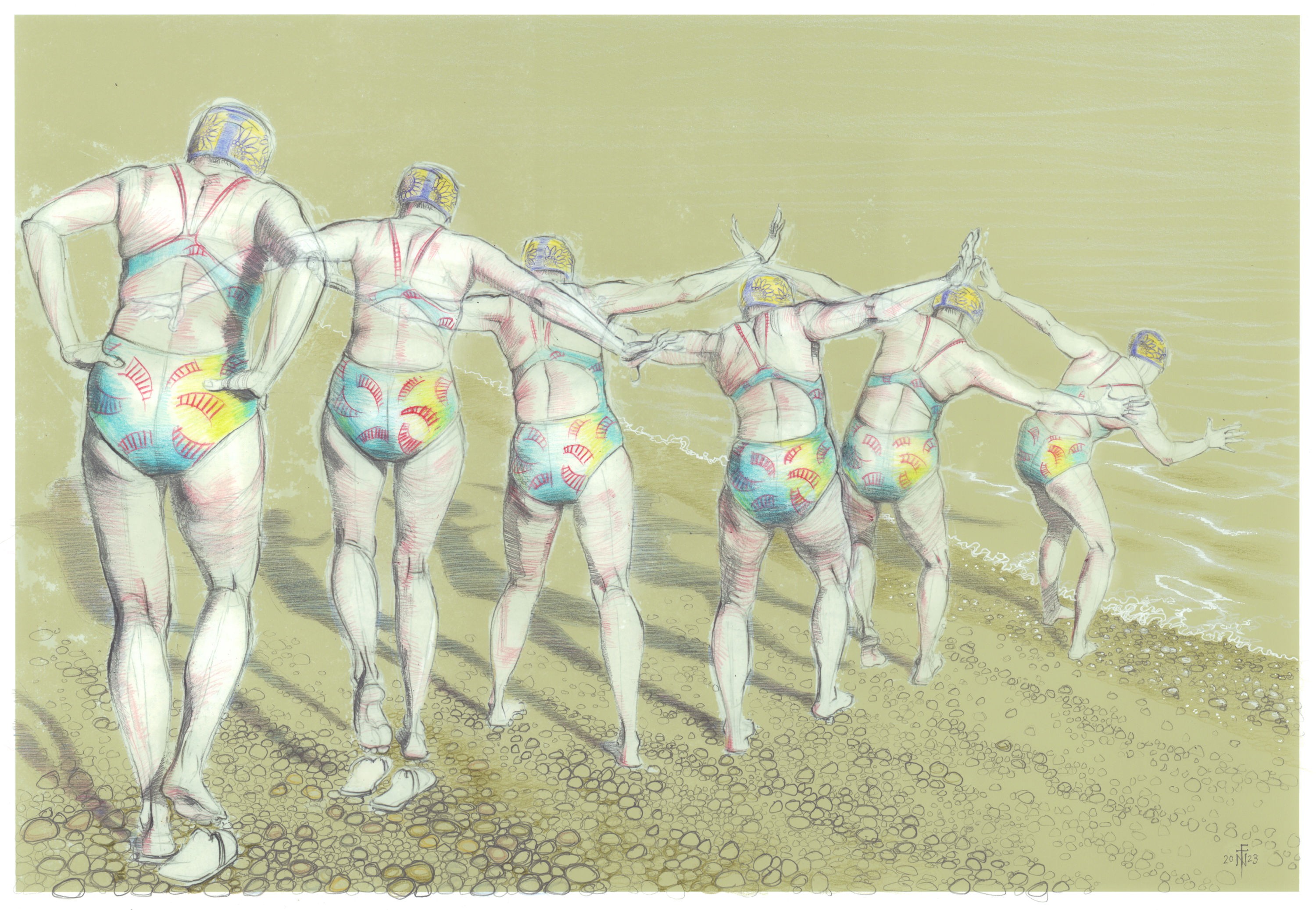 I then printed it and continued in pencil. As a final artwork it might be an awkward mix of print and pencil, but it very effectively retains the original sketches. Re-sizing and subsequently re-drawing the sketches would, I think, have lost some of the energy in the picture.