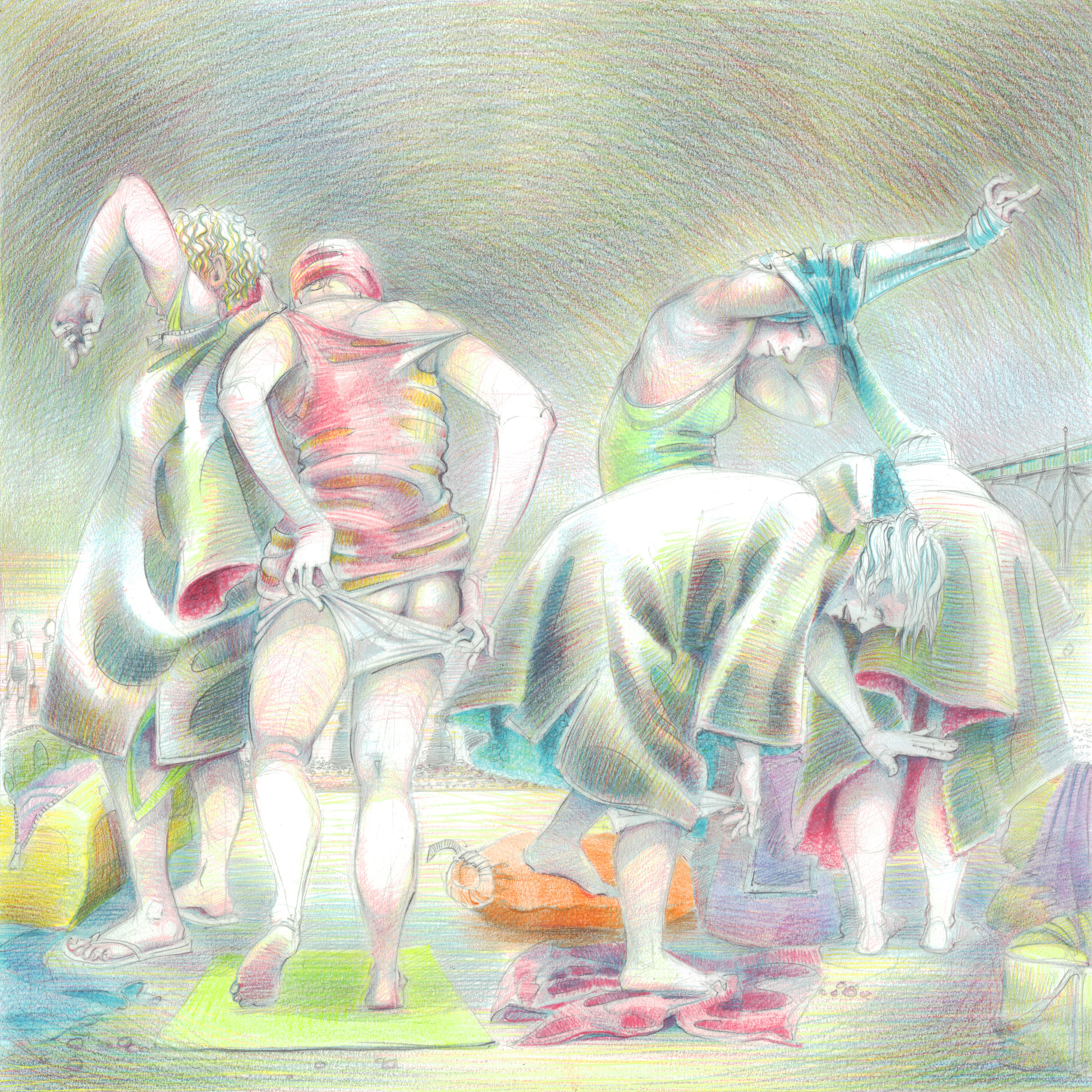 Those who do not swim outside in the winter never get to experience one of the small delights of the undertaking, which can fill the mind with a warm glow though the body may be chilled to the core. It is the glow of victory. The minor but absolutely necessary victory of achieving a more-or-less dressed state of being, with fingers that have no feeling, muscles that have no strength, an arrangement of confoundingly over-complex tendons. It is the victory over incomprehensibly elastic fabric, and numb skin sticky with damp and salt.