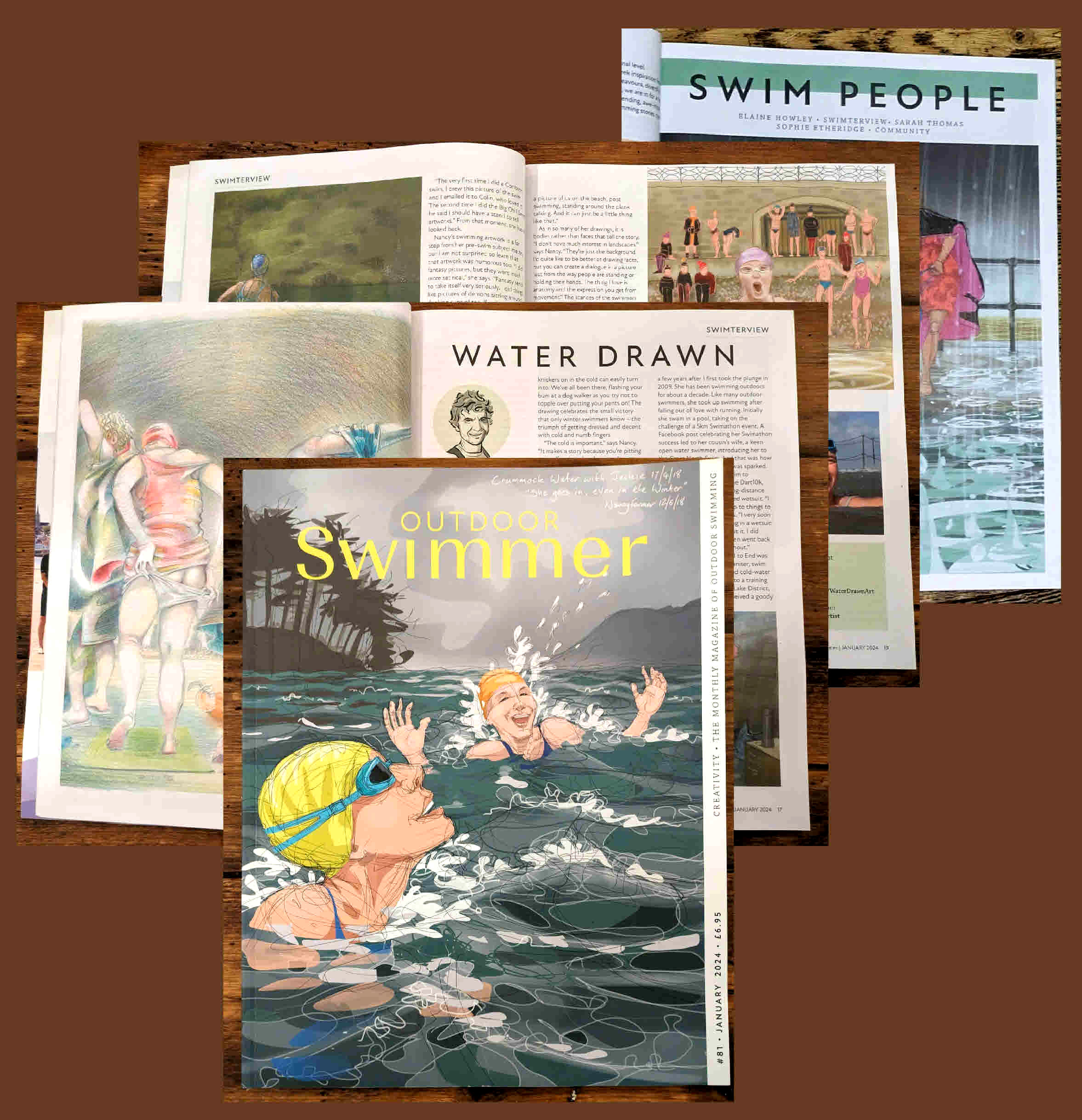 Absolutely delighted to be interviewed by Jonathan Cowie for the January Issue of Outdoor Swimmer! Thank you Jonathan for a really lovely write-up too, which features artwork, cold water, friends… the correct protocol of NOT swimming immediately… and the not insignificant amount of cat-interruptions which punctuated the interview.