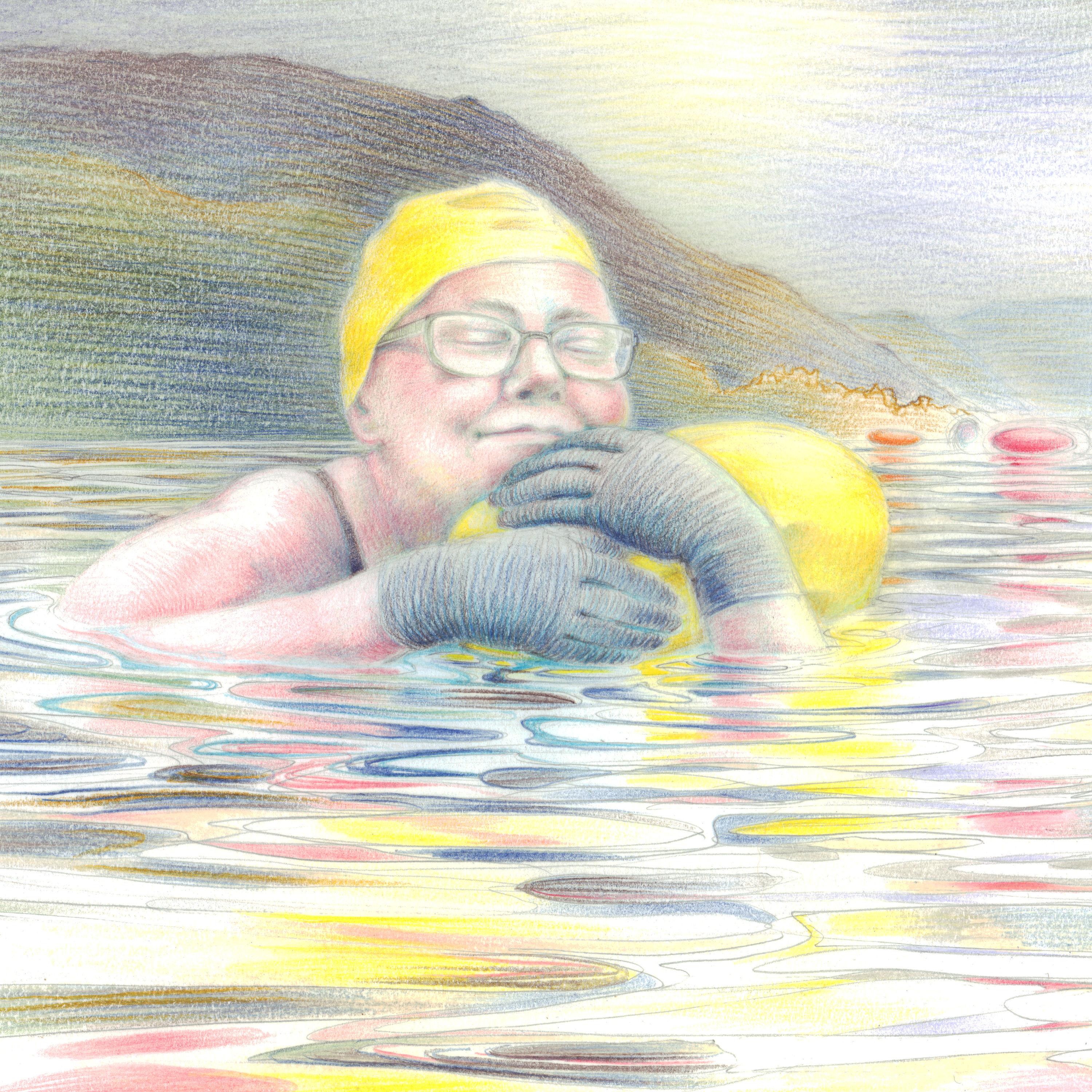 They bob happily about in a freezing lake, you can see them right out across the water, tow floats like Smarties spilt on a massive grey glass coffee table, which is how The Smarties got their name. And one day, I shall draw a picture that better describes that scene, but on this particular grey glass day I spied Jean, not talking, simply bobbing in quiet bliss. This is Jean, and the Smarties.