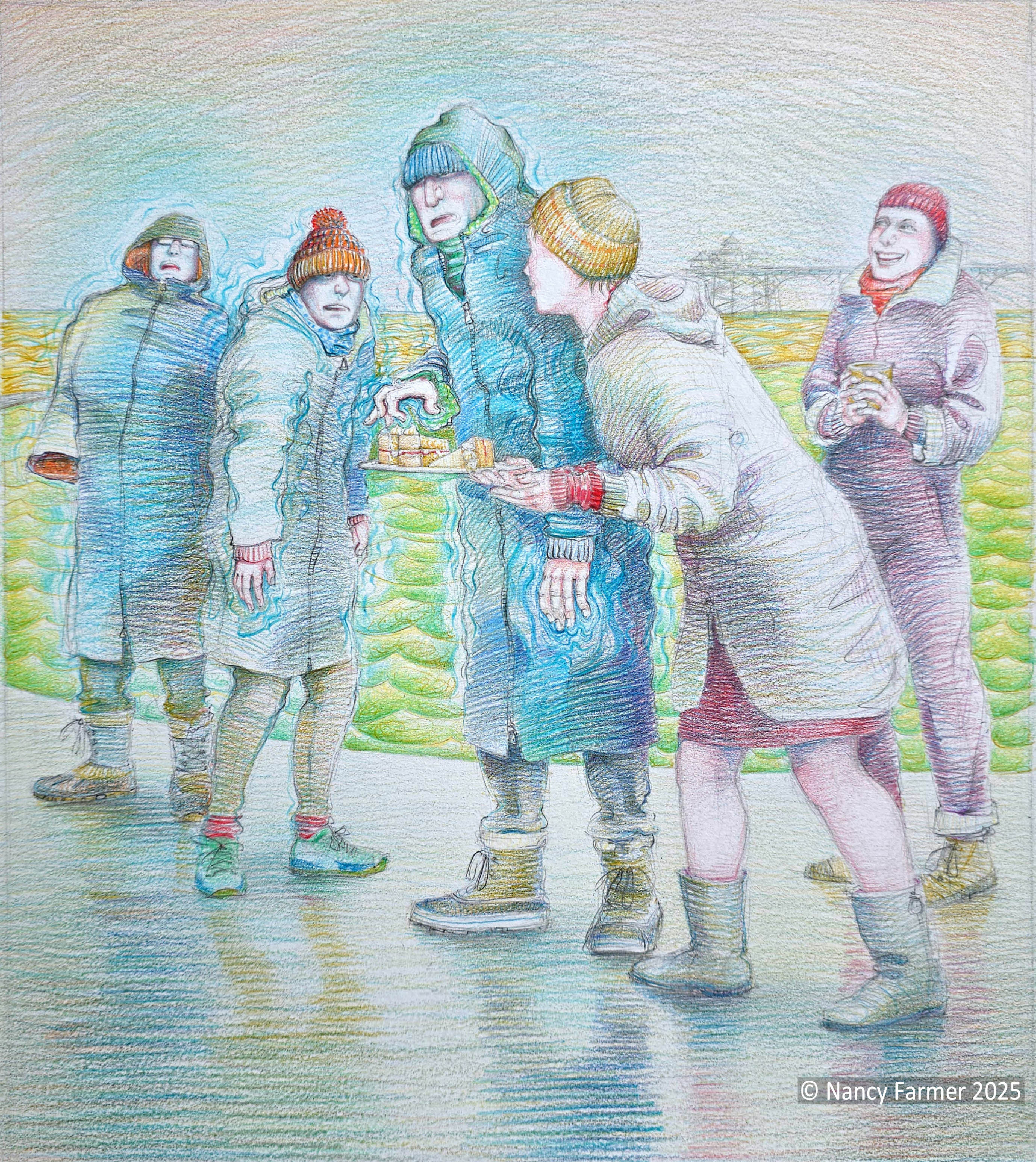 Shuffling and dribbling, with gaping mouths beneath woollen hats, their barely functioning brains comprehending just one word: “Cake?”