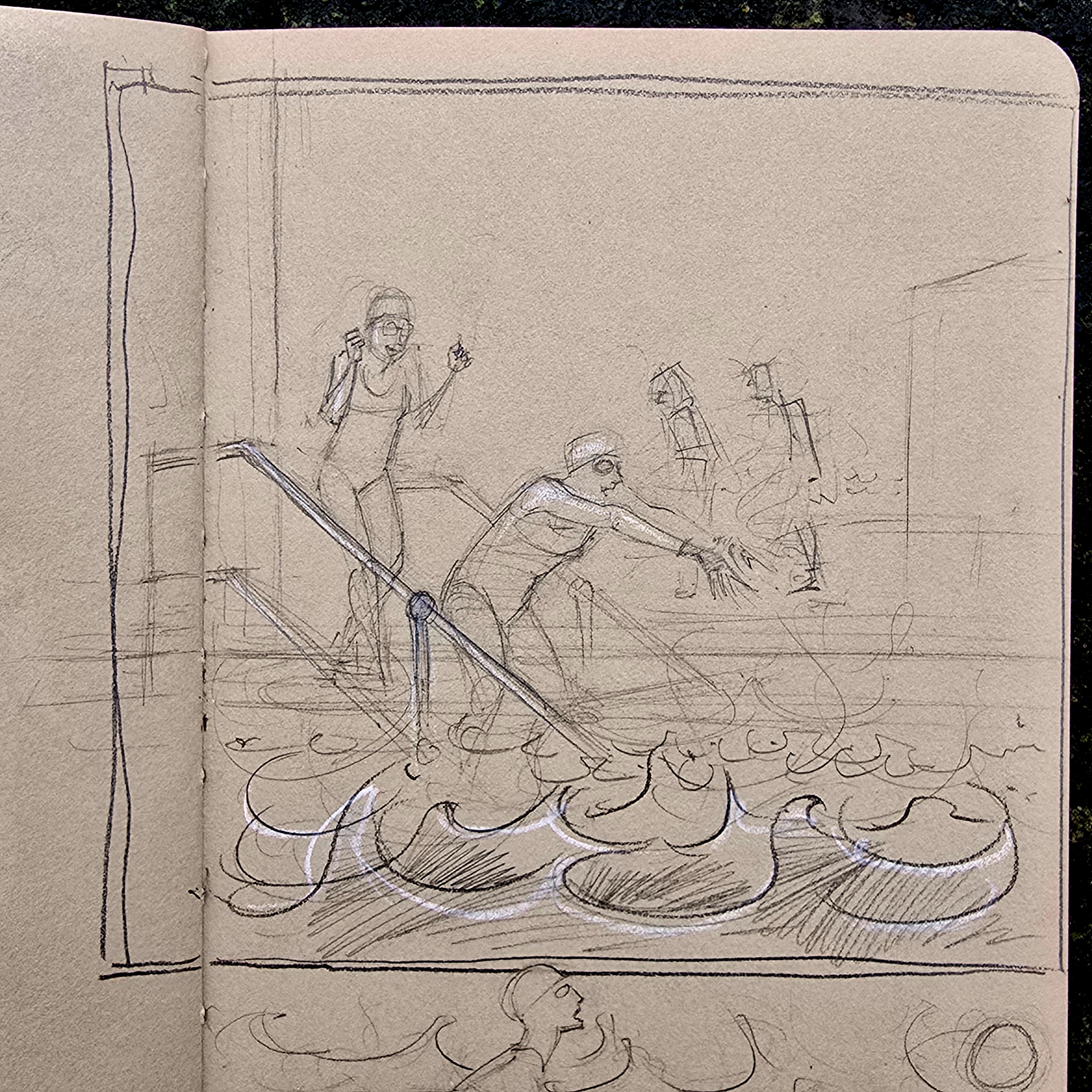Meanwhile here is a drawing inspired by a Monday morning in December 2024. It is also the picture for my 2026 calendar, still available here…